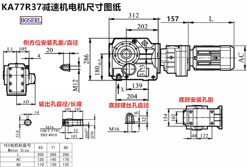 | 齒輪減速機 | KA78R38Y71M4 | KA78R38DRS71M4 | KA78RF38Y71M4 |
