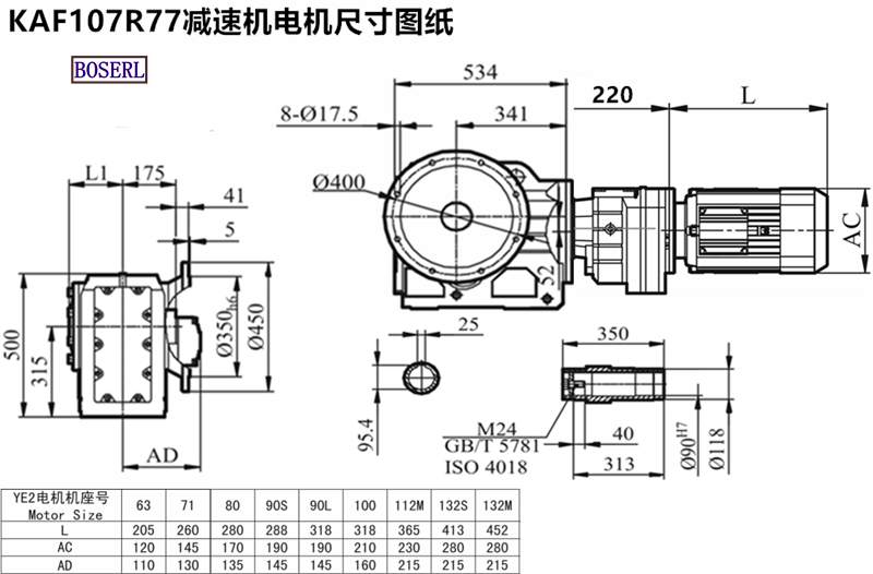 | KAF108RF78減速機(jī)型號(hào) | KAF108R78Y63M4 | KAF108R78DRS132M4 | KAF108RF78Y4KW |