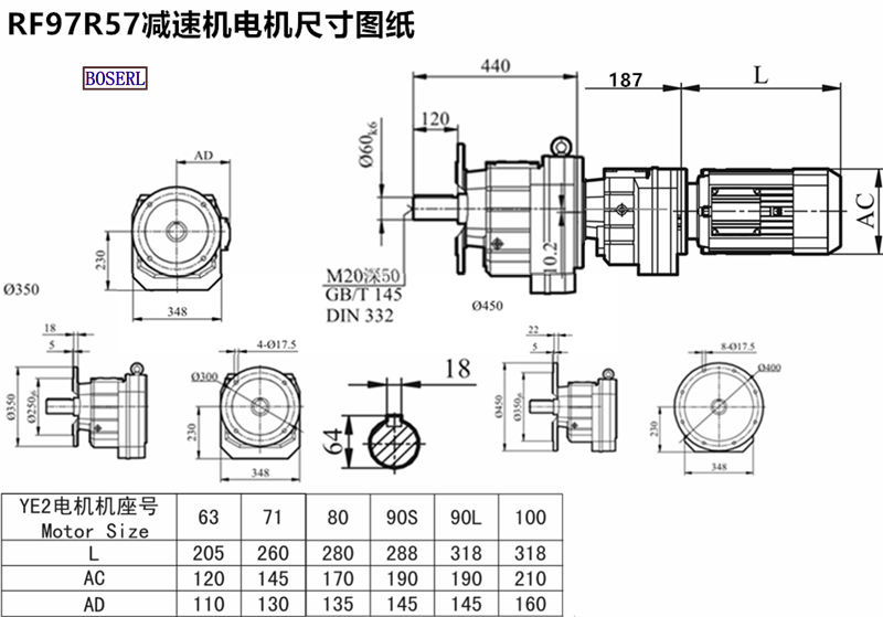 | 直線輸出減速機(jī) | RF98R58YPE100L4 | RF98R58DRE71M4 | RF98R58DRL90S4 |